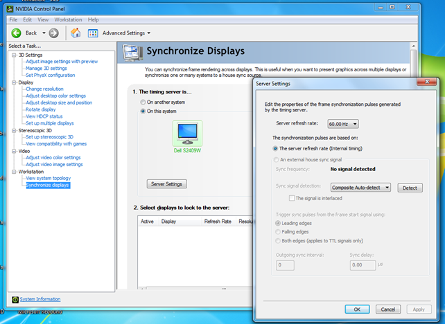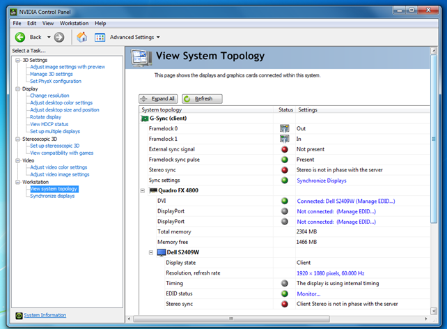Check on the "View System Topology" tab that the framelock sync puls is "Present".