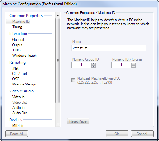 Note: All changes done in the Machine Configuration dialog require a restart of Ventuz to take effect.