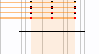 Multiple keyframes can be selected by either SHIFT+left mouse button on individual keyframes or by SHIFT+left mouse button outside any keyframe and dragging to start a rectangle selection. Selecting multiple keyframes will draw range borders in the timeline from the very first to the very last selected keyframe. These range borders can be used to scale all selected keyframes. Move the mouse cursor over the range borders until the scale handle is displayed and left-click and drag the mouse to scale in any direction.