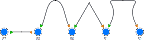Connections between States are the visual representations of parts of an animation timeline. These connections are automatically created if two or more States are added in Time View or Diagram View. To manually create a connection between two States, click right mouse button on a State and drag right mouse button on top of another state (or the same state). During the drag&drop operation, a black arrow indicates the direction of the connection.