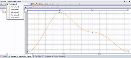 Each scene can have any number of independent animations where each animation can contain multiple properties being animated. To change the current working animation, use the drop down box at the top left corner of the Animation Editor. The animations are identified by its name.