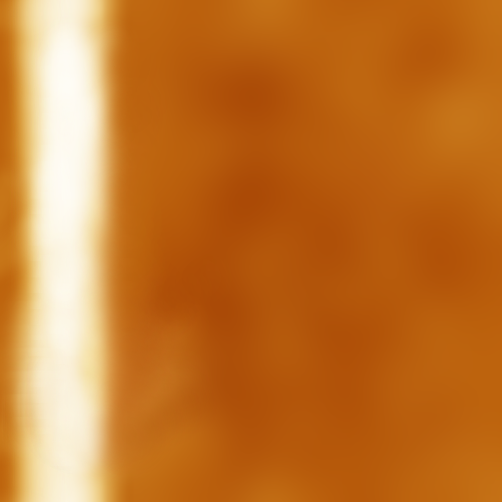 To make the cylinder more interesting, we add a stylish texture to it. You can use pretty much any image processing tool (Photoshop, Gimp, ...) available to create this texture. Create a new 1024x1024 image and fill it with a dark base color. Then use the dodge/burn tool with a soft and very large brush to increase the brightness of some areas. Here we have drawn a line on the left and some spots on the right. Optionally, use Gaussian blur to make the main area of the texture very smooth. There should be no detail in the texture except for the bright stripe.