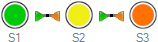 Note the green and red triangles at the ends of the connections. Those decide which outgoing connection of a State is used when the Next/Prev buttons are pressed in the Slide Manager Toolbar. Make sure to draw the connection from S1 to S2, not S2 to S1!