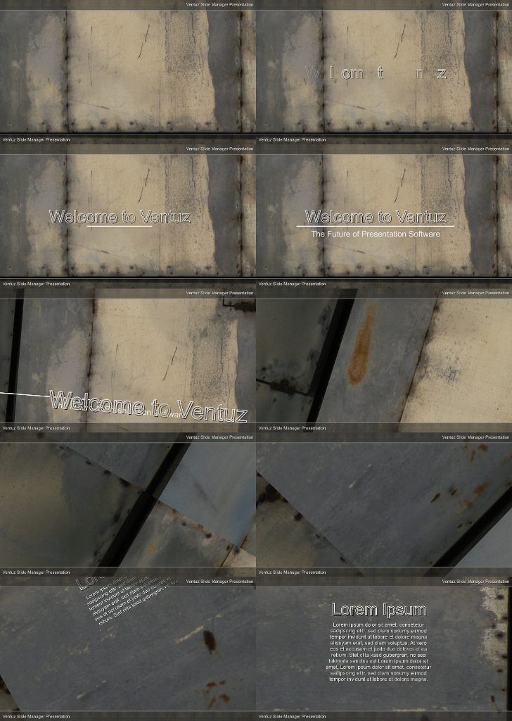 The most difficult part about creating a Ventuz slide show is to create a style or template. Designing a nice background/world, fade in/out transitions for individual slides, Slide content, ... once those are created, filling a presentation with content is pretty simple. Even more so if the designer properly used Interfaces to expose relevant properties so the user does not have to concern about the Slide implementation.