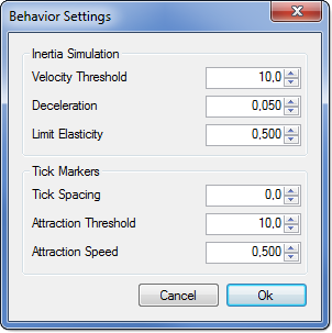 The Machine Configuration has two options to adapt physics behavior parameter to changing screen size. As long as Scale Thresholds with Window Size is active, Ventuz will do its best to internally scale all parameters such that the user experience stays the same. For more explicit measures, an additional scaling factor that is applied to all parameters expect tick spacing has been created.