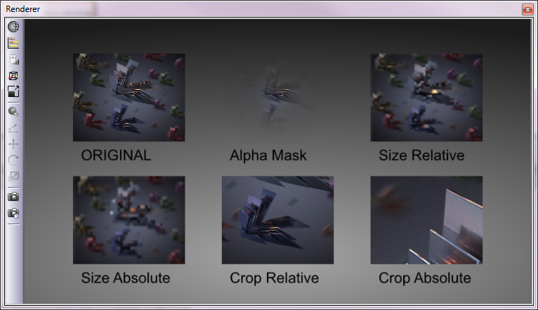 If the property Resize is active, the image that provides the new alpha channel will be resized to fit the original image. The properties PositionX and PositionY can be used to change the position of the alpha image within the alpha channel of the source image.