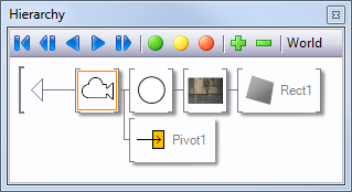 Drag a View node from the Toolbox to the Hierarchy Editor and choose Camera. Insert the camera in front of the Pivot.