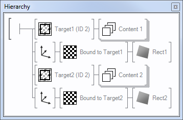 The following example shows two RenderTarget Nodes that share the same memory. Since the output texture of Target1 is used before Target2 is reached in the render order, Target2 can clear and re-use the same memory without any visual difference to using two separate RenderTargets. To avoid clearing the content of a shared render target use a Viewport node as the first node behind the render target and disable all clear options of it.