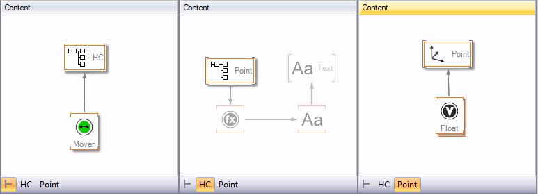 As long as an Input Property is bound, it will update its value whenever the output property changes. For example, the X-Rotation property of a Axis node can be bound to a Mover node to continuously have objects under the Axis rotate around the X-axis. Binding of node properties is at the heart of Ventuz and allows the creation of very complex logic without having to program a single line of code.