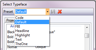 The Font Presets are defined and managed in the top area of the Font Typeface Editor.