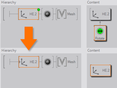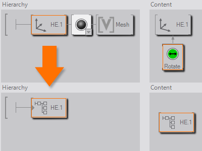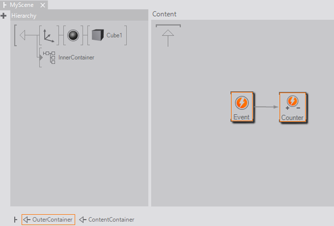 the Hierarchy or Content Container to the respective part of the scene. Since this is a very generic node and a scene often contains different containers, it is advisable to give it an appropriate name right away by double clicking