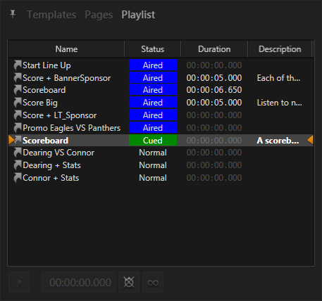 A Playlist is one way to plan ahead in Ventuz Director. It is a simple list of templates or Pages the operator can step through in order or jump around. To cue an entry, it is activated by