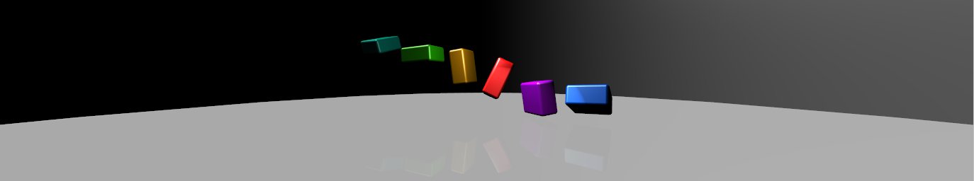 The general setup is rather simple. Create a Cylinder with a very large radius and a very large hole in it. This will create a thin, 360 degree "canvas". Add a Circle as a ground and a Camera that sits inside the cylinder.