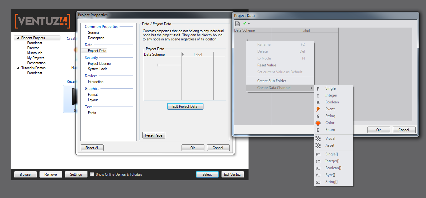 Finish the dialog and load your project again. Press SHIFT+F12 to open the Project Data Window and have a look at the created channels.