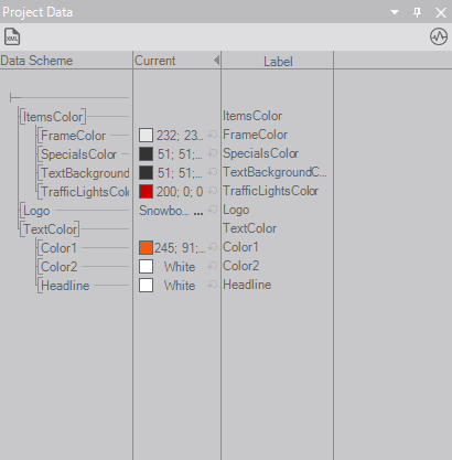 The project has Project Data holding the global data initially managed by the Logo/ColorDefinitions Container.