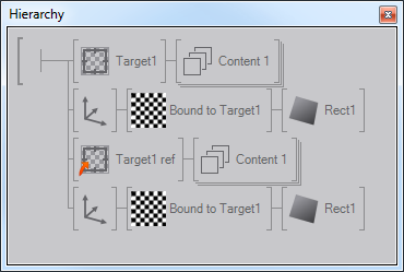 An second way of sharing render target is via the Render Target Reference node. This node can only be used within the same scene tree and shares the actual render target via Binding. The property RenderTarget has to be bound to the Texture output Property of the actual Render Target node. This technique is less error prone as there is no chance to assign different sizes or multisampling options.