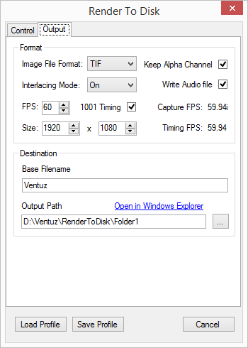 Ventuz supports two ways to create image sequences from any Ventuz scene. First there is a GUI-based Render-To-Disk functionality available in Ventuz Designer. Additionally it is possible to create image sequences via a dedicated Remoting API.