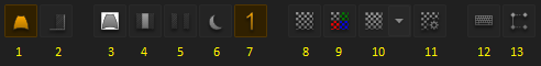 | 6 | Darken rendering / test image | Sometimes the user interface overlay is hard to see over a bright rendering or test pattern. This button will darken the background to remedy this. |