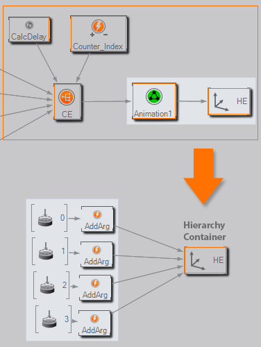 In both cases, Container Nodes improve productivity as they enable the author to combine nodes to a new customized type of node. Picking up on the UI button example above, a button may require a geometry, multiple textures, keyframe animations and much more. All of those nodes can be put into one container, thus having the container act as a single node representing the button. The individual nodes are hidden from the main hierarchy level making the scene easier to understand and instead of duplicating the subtree, only the "button node" needs to be duplicated.