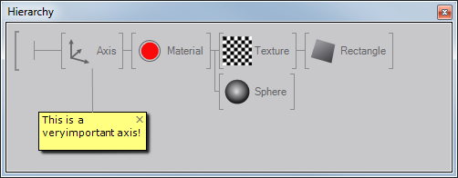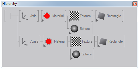 If a color is set at one node, it will be inherited by all its children. In the above example, only the Axis and the Texture node have been explicitly assigned a color. Note that only Hierarchy nodes can be colored. The coloring is generally most effective when used sparingly to avoid a colorful chaos in the Hierarchy Editor.