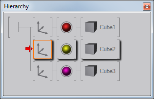 The Hierarchy Nodes of a scene are part of a horizontal tree structure which starts at the Scene Root, symbolized by a horizontal T-junction in the top left corner of the Hierarchy Editor.