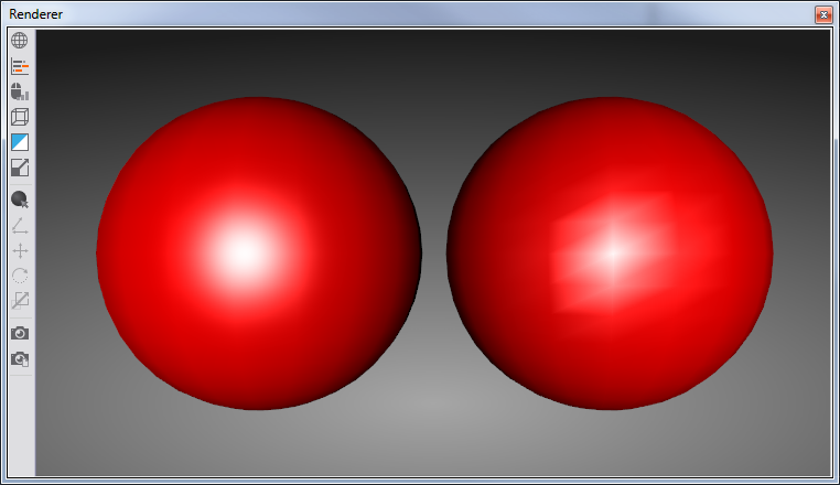 The right sphere uses the Fixed-Function lighting whereas the left sphere was lightened with the SpecularLighting shader. The difference is most visible in areas with specular highlight. The specular highlight of the left sphere is more uniform compared to the right one. The Fixed-Function lighting uses a per-vertex lighting (and interpolates the area between vertices) whereas the shader applies a per-pixel lighting that renders much smoother transitions.