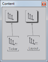 The Ticker and Layout nodes are so called Arrange Controllers that can be bound to the Control property of an Arrange node. They override and extend the Arrange nodes default behavior in how child nodes are positioned, oriented and so on to fit a variable amount of data to a limited amount of space.