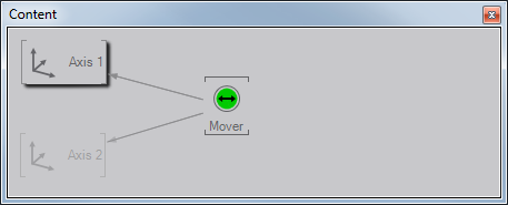 The same principle applies to Content nodes which provide values or resources to Hierarchy nodes. If an Axis node receives values from a Mover and the Axis is copied normally, the Mover will be copied as well. But if the parameters of the second Mover remain the same, it is dispensable because the second Axis could receive its values from the first mover: