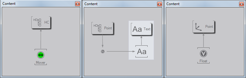 As long as an Input Property is bound, it will update its value whenever the output property changes. For example, the X-Rotation property of a Axis node can be bound to a Mover node to continuously have objects under the Axis rotate around the X-axis. Binding of node properties is at the heart of Ventuz and allows the creation of very complex logic without having to program a single line of code.