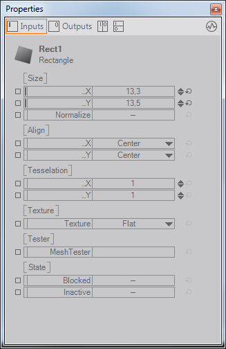 The following screenshots shows the properties of a Rectangle node: