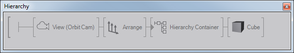 Good, so now we are ready for the first bar. We want all the mechanics for bars to be reusable and as automated as possible. Because of this, we will use Interface Containers that will let us re-use one Container with all the logic for every bar. So, grab a Hierarchy Container Node and place it behind the Arrange Node. Then, get a Cube Node and put it behind the Hierarchy Container, this will be your bar.