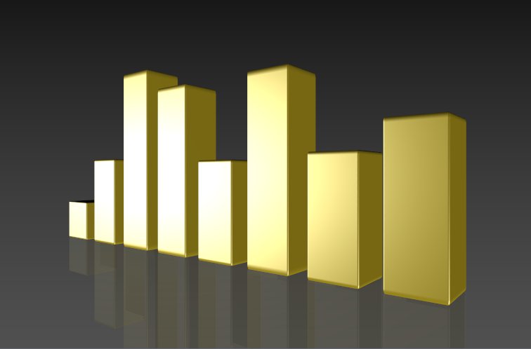Now you can go in and clean things up. It helps to rotate the Camera a bit, so the whole chart has a more effective or visually pleasing angle. You can add a reflection, perhaps a background and lighting to quickly add some quality to the scene. Then, your render output should look something like this: