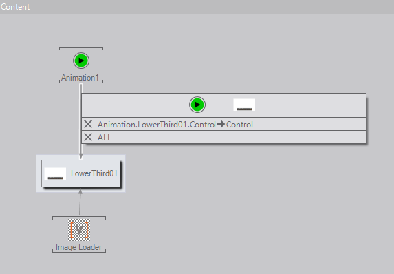 Binding the logo needs some extra attention. The !LowerThird01 Container has been designed to receive an image, so we can not bind it directly to our Project Data. Instead take an Image Loader and bind the File Property to the Project Data Channel called Logo. Then bind the outputted image of the image loader to the according input of !LowerThird01.
