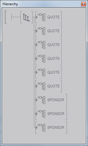 The following XML Data selects two QUOTE elements followed by one SPONSOR element. All other (unused) elements will be blocked internally (hidden). The remaining (visible) elements will be positioned on screen following the setting of the Arrange and Layout nodes.