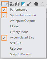 This gives a detailed breakdown of what happens on the main CPU thread and the GPU. If SDI boards or Webcams are in use, it will also display the timing of the Video IO thread.