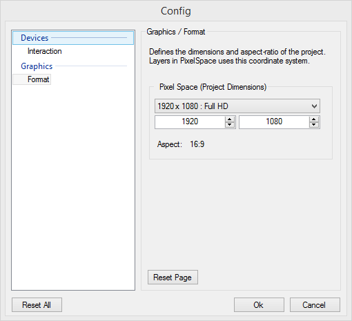 Make the necessary changes and click the OK button. A .config file with the name of the according presentation file will be saved next to the .vpr file containing the modified settings. Every time a VPR is started the Presenter will look for an according .config file. If one is found, the containing override settings will be used; otherwise the original settings which have been saved in the VPR during export are used.
