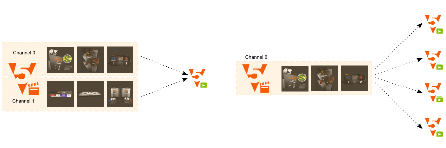 A typical Director show consists of a single channel. This is sufficient for the majority of applications and the reason why most of this documentation won't explicitly refer to multiple channels. All concepts of Director that are introduced in the following chapters extend to working with multiple channels and it is therefore left to the later chapters such as Topology or Channel Configuration to discuss the more advanced scenarios.
