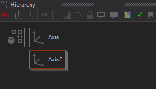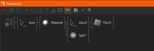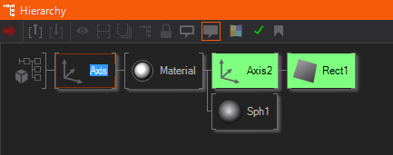 If a color is set at one node, it will be inherited by all its children. In the above example, only the Axis and the Material node have been explicitly assigned a color. Note that only Hierarchy nodes can be colored. The coloring is generally most effective when used sparingly to avoid a colorful chaos in the Hierarchy Editor.