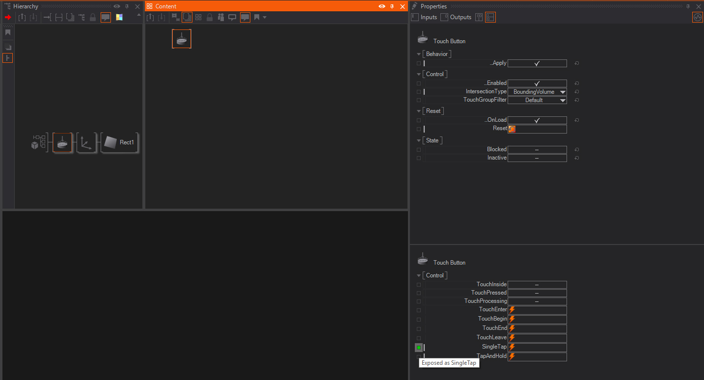 Each node has a number of Input Properties that are parameters which affect the nodes behavior (i.e. the size of a Rectangle or the speed a video is played). A node can also have a number of Output Properties that can be used to feed the input properties of other nodes. This is done via Bindings.