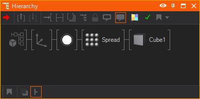 There are two very important points that have to be considered with the use of the Spread nodes. Disregard may cause critical performance penalties. The first point concerns the tree in the Hierarchy Editor. The Spread node duplicates every subtree that is linked to it. To avoid unnecessary duplication of nodes, the subtree should be reduced as far as possible. The following screen-shots show a bad and a correct use of the Spread node.