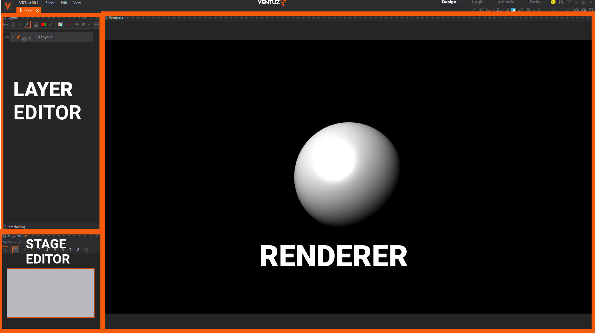 One of the new features introduced in Ventuz 5 is the possibility to create custom Layouts and Tabs to switch between them. By default Ventuz includes 4 different layouts tailored for specific tasks, but these layouts can be edited, customized and saved for later use, depending on each user and project needs. The available layouts are: