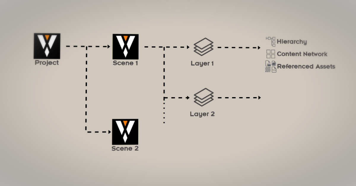 This page gives you an overview of the general structure of a Ventuz Project and how to handle Scenes inside Ventuz.