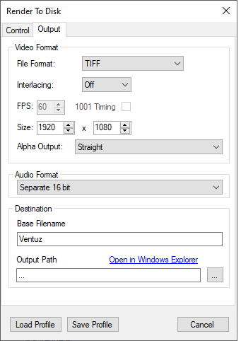 For Render-To-Disk in XDCAM, DNxHD/DNxHR and Apple ProRes formats an additional encoding License Option is required! Please contact Ventuz Sales for license questions.