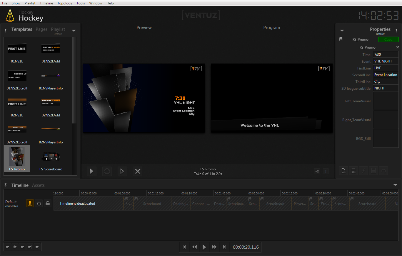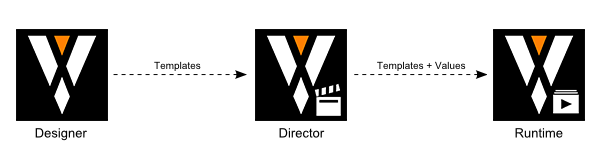 The remainder of this document assumes the reader is an operator and guides him through the second part of the workflow described above. It uses the demo content that shipped with the Ventuz installation and therefore being able to design templates is not required in order to follow the steps shown.