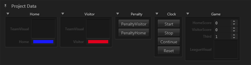 A show often has properties that are not associated with one template in particular but the show as a whole. One example would be the current score in a football match, another the name of a guest speaker in a moderated panel. Instead of adding such properties to each panel, the author of the Ventuz scenes can declare them in a dedicated space, the Project Data, and thus associate them with the project in general instead of any particular scene or template.