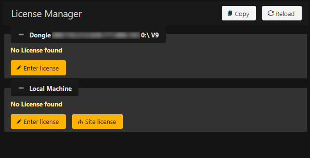 The screenshot above shows two entries: The first represents a Ventuz dongle that has been detected which contains no appropriate licenses. Purchased licenses are usually installed on a dongle so an operator can take the license with him when switching machines. For Community licenses, a license is stored on the machine itself instead of on a dongle. Visit Our Website to obtain a Community License Key. Once obtained, it can be activated in the Ventuz License Manager.