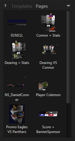 A page is the combination of a template and some associated data. If a template is a blueprint or form to fill out, the page is a filled out version of it that is ready to go. Pages are stored in the Pages folder inside the Ventuz Project and can be used by any show that uses the project. Typical examples are player bios, sponsors or other elements of a show that are known in advance and re-occur multiple times within a show. What is actually saved is only the specific data with a link to the template to be used. This way, a page requires extremely little memory usage, so many different pages, that are linked to a few templates, can be saved and used without bogging down memory or storage.