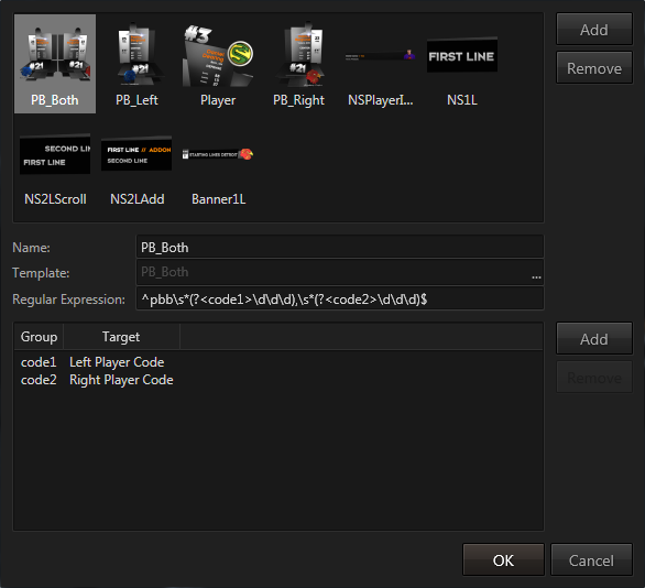To add a new template, simply press the add button in the top right corner and select a template, enter a regular expression and optionally connect parts of the regular expression by pressing the lower add button.