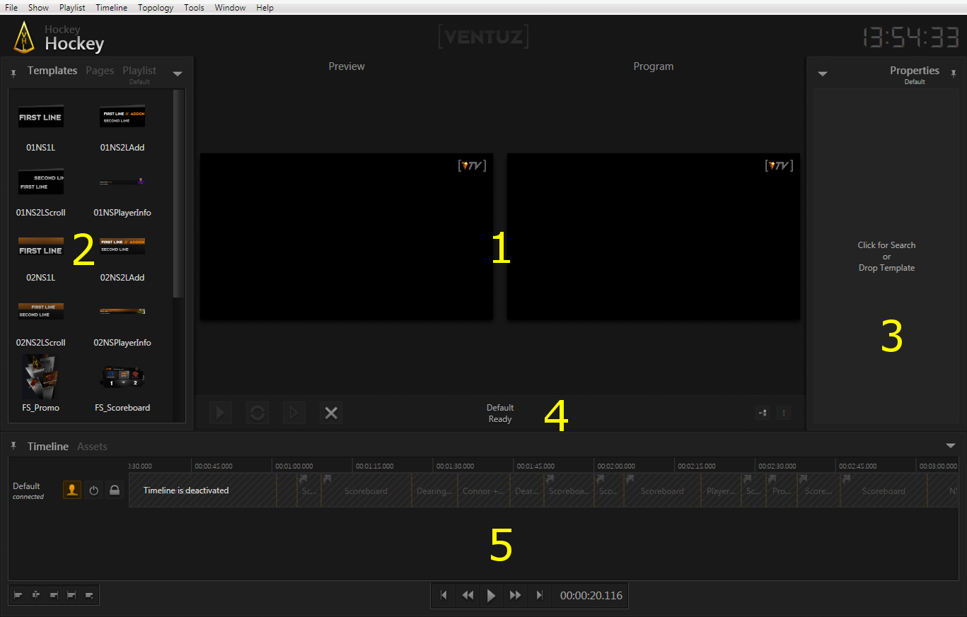 Once a show is opened, Director hides the launch screen and switches to the full docking window environment that will be discussed in the following parts of this chapter.