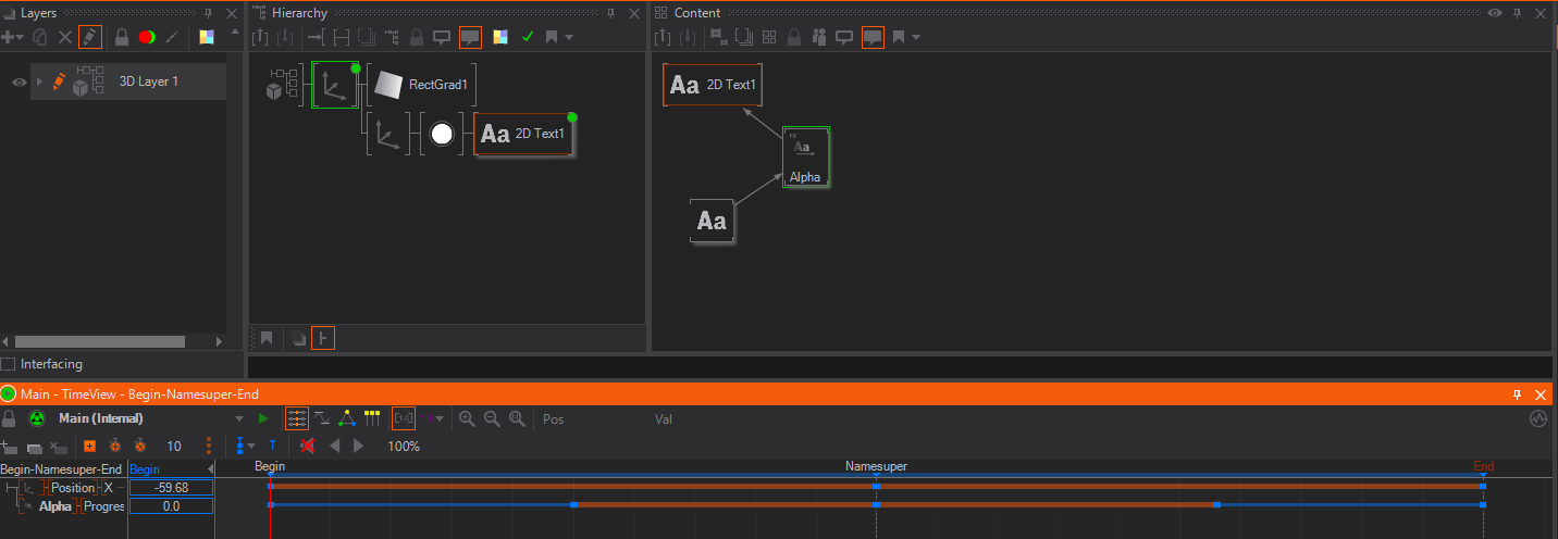 In order to create a simple name super, we create a 3D layer and click the edit button to get into .Inside the Hierarchy Editor then we just take a Gradient Rectangle with some 2D Text over it.